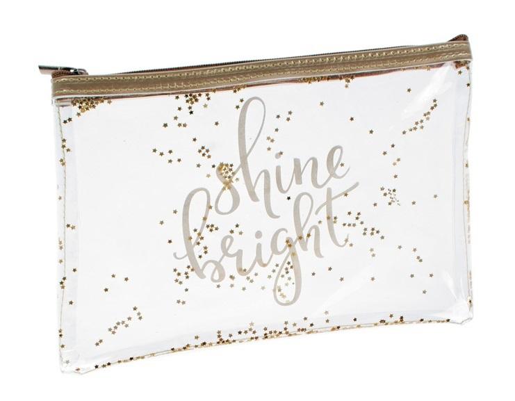 Przezroczysta, wygodna, nieduża saszetka zapinana na zamek błyskawiczny, dzięki czemu nic z niej nie wypadnie. Niezbędny dodatek do każdej torebki. Dostępna w wersji srebrnej oraz złotej. Wymiary: 20 x 14 cm