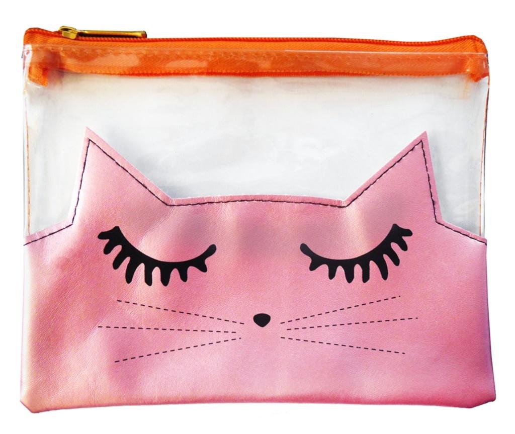 Modny piórnik saszetka o wymiarach 20x15 cm z motywem kota.