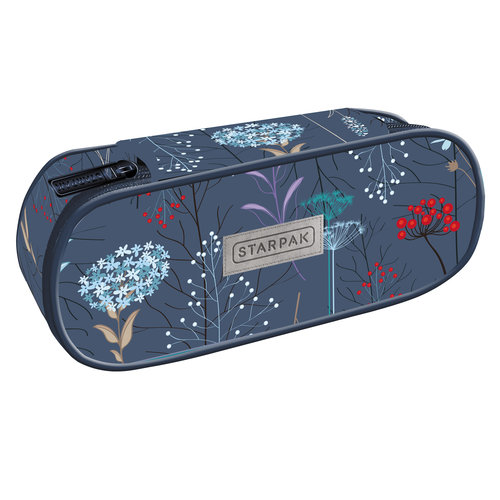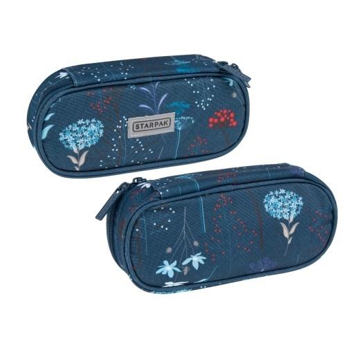 Piórnik w kształcie owalnej saszetki z kolekcji Starpak dedykowanej młodzieży. Piórnik z zamkiem błyskawicznym. Saszetka pomieści niezbędne artykuły piśmiennicze i nie zajmie dużo miejsca w plecaku. Produkt w kolorze granatowym, z modną grafiką przedstawiającą polne kwiaty. Piórnik posiada element odblaskowy. Zapoznaj się również z innymi produktami Starpak z serii dedykowanej młodzieży! Produkt jest wyrobem tekstylnym. Przeznaczony dla dzieci w wieku: 3+. Wymiary produktu(wys.x szer. x gł.) [cm]: 6x22x9,5.