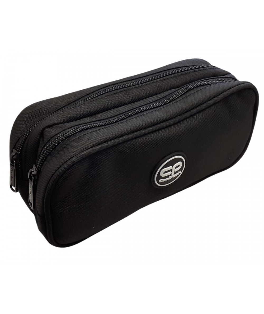 Duży czarny piórnik  w formie dwukomorowej saszetki od marki CoolPack z kolekcji BLACK 2023/2024.