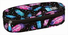 Funkcjonalność: 1 pojemna komora główna dodatkowa klapka z miejscem na przybory piśmiennicze oraz kieszonką zapinaną na suwak cały korpus piórnika usztywniony gąbką ergonomicznie wyprofilowany, solidny uchwyt do suwaka