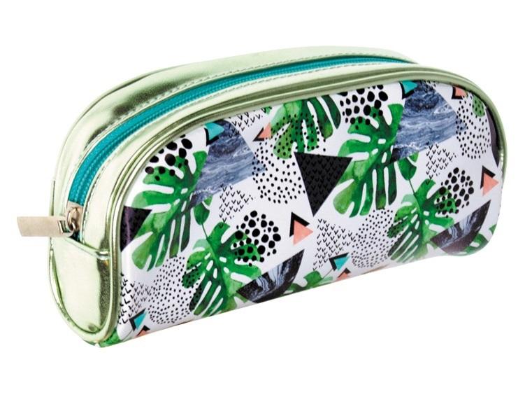 Piórnik z zamkiem błyskawicznym. Pomieści niezbędne artykuły piśmiennicze i nie zajmie dużo miejsca w plecaku. Dostępny w dwóch wzorach - w liście i w ananasy. Wymiary: 20 x 4,5 x 10 cm