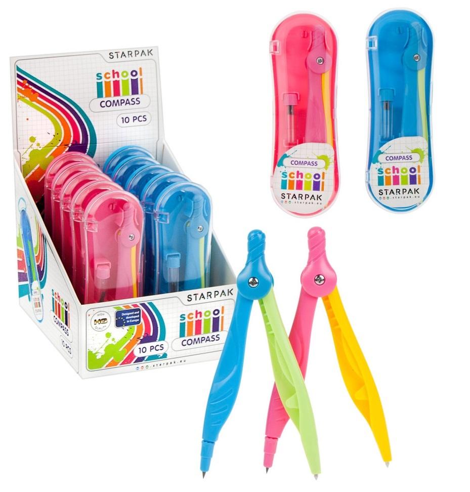 Cyrkiel z kolekcji Starpak dedykowanej dla szkoły i biura. Cyrkiel wykonany z trwałego materiału, wykończony kolorowym plastikiem z rysikiem w komplecie. Cienki rysik w ołówku umożliwia dokładne rysowanie figur geometrycznych. Całość zapakowana w plastikowe etui, ułatwiające przechowywanie i zabezpieczające przed skaleczeniem dla większego bezpieczeństwa Twojego dziecka. Zapoznaj się również z innymi produktami Starpak! Produkt nieodpowiedni dla dzieci poniżej 3 roku życia. Wymiary opakowania (wys.x szer. x gł.) [cm]: 19x7x2.