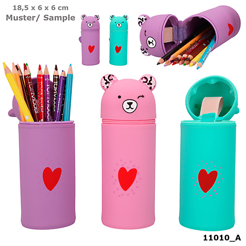 Piórnik silikonowy Top Model Candy Cake Misiek, zapinany na suwak, w trzech wesołych kolorach: fioletowy, różowy lub turkusowy.