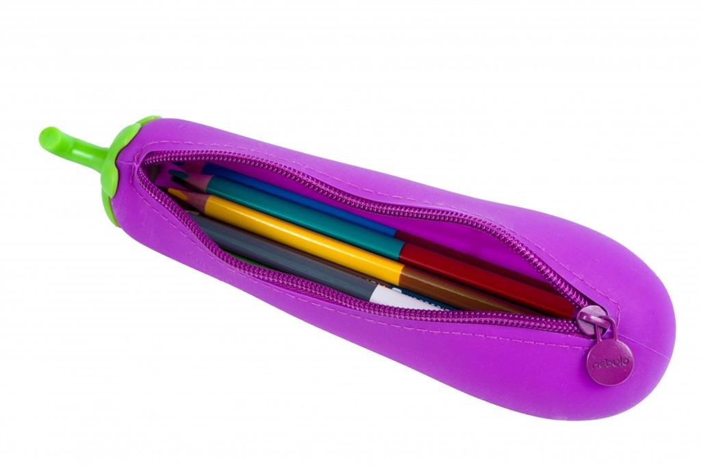 - zabawny silikonowy piórnik w kształcie bakłażana w jaskrawym kolorze;
