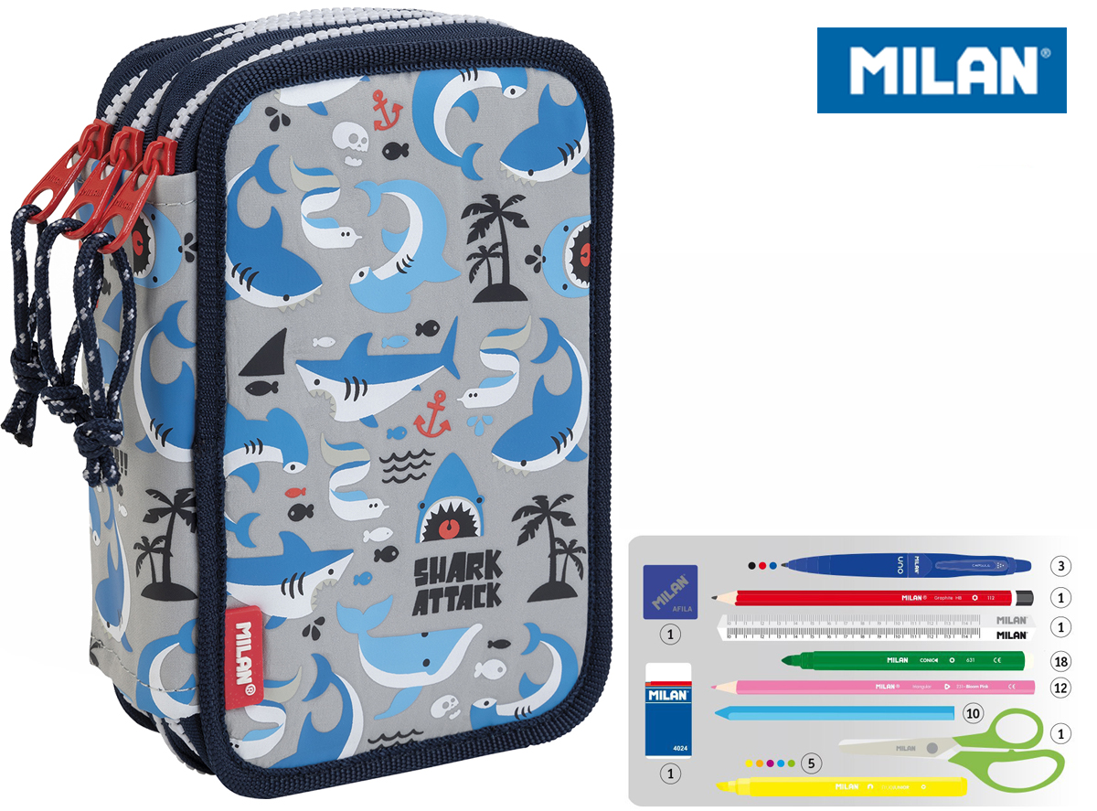 Opakowanie Piórnik stojący Shark Attack szaro-czerwony MILAN