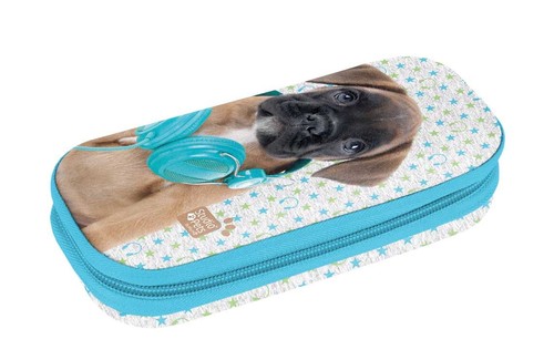 Piórnik bez wyposażenia, w środku klapka z uchwytami na przybory piśmiennicze.