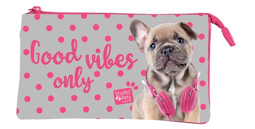 Trzykomorowy piórnik - kosmetyczka, ozdobny puler. Ułatwia dziecku zachowanie porządku. Materiał satin Rozmiar 22x12,5x1,5 cm