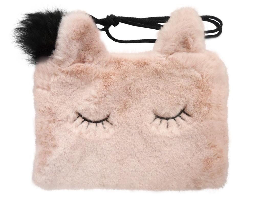 Modny piórnik saszetka z pluszu z pomponem o wymiarach 19x19 cm.