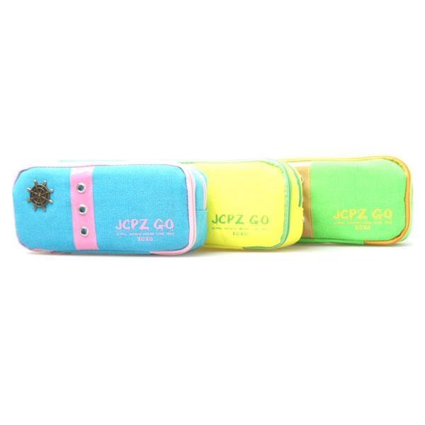 Piórnik saszetka we fluo kolorach, idealny zarówno dla dziewczynek jak i chłopców. Z pewnością spełni oczekiwania każdego wymagającego ucznia. Posiada dwie, zapinane na zamek błyskawiczny komory na m.in. pisaki, kredki czy przybory geometryczne. Frontowa strona ozdobiona metalowym marynarskim kołem żeglarskim. Mix kolorów. Produkt wysyłany losowo,