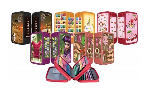 Piórnik szkolny Giimboo 3 komory z wyposażeniem mix