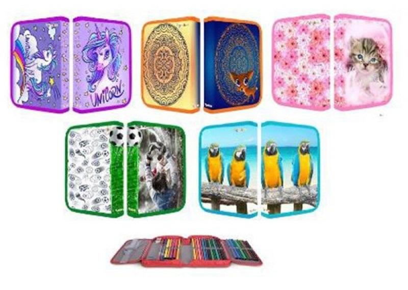 Piórnik szkolny Gimboo jednokomorowy z wyposażeniem mix