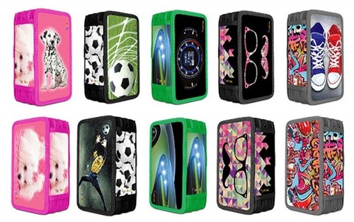 piórnik szkolny z kolekcji GIMBOO 2015 posiada 3 komory zestaw zawiera wyposażenie (linijkę, ekierkę, 3 szt. długopisów, ołówek, gumkę, temperówkę, 16 szt. flamastrów, 16 szt. kredek) dostępny w różnych wzorach kolor: mix kolorów