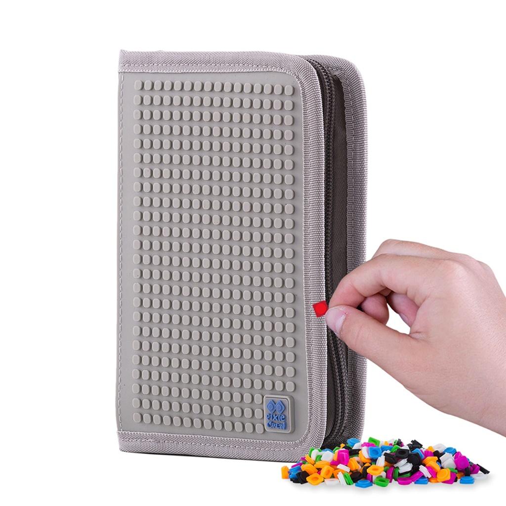 Szkolny piórnik na suwak PIXIE CREW z motywami bestsellerowej szaro-niebieskiej kostki, nawiązującej do znanej na całym świecie gry komputerowej. Posiada kreatywny szary panel, na którym można tworzyć oryginalne i spersonalizowane grafiki, za pomocą małych silikonowych pikseli. Piórnik wykonany został z poliestru. Wewnątrz znajduje się wystarczająco dużo miejsca na przybory szkolne. Jest 16 klasycznych gumek, do których można wsunąć ołówki, czy długopisy oraz 4 szersze na linijkę, gumkę, czy nożyczki. Wnętrze zawiera także transparentną kieszonkę. Piórnik jest sprzedawany z dodatkowym darmowym zestawem około 100 pikseli.