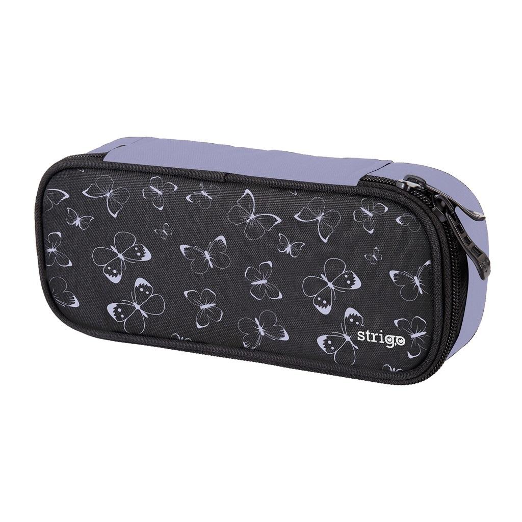 Piórnik szkolny Strigo. Wykonany z wysokiej jakości materiału, który jest odporny na zabrudzenia. Piórnik jest usztywniany i posiada dużą kieszeń wewnętrzną oraz klapka z miejscem na przybory piśmiennicze. Na górnej pokrywie znajduje się kieszonka. Piórnik posiada wysokiej jakości suwaki, które otwierane są zarówno z lewej jak i z prawej strony.