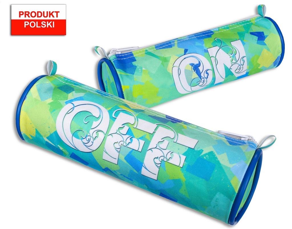 Piórnik tuba wykonany z kodury, ozdobionej nadrukiem przedstawiającym grafikę ON/OFF wykonanym w technologii sublimacji. Piórnik o wymiarach 21x7[cm]. Piórnik bez wyposażenia.