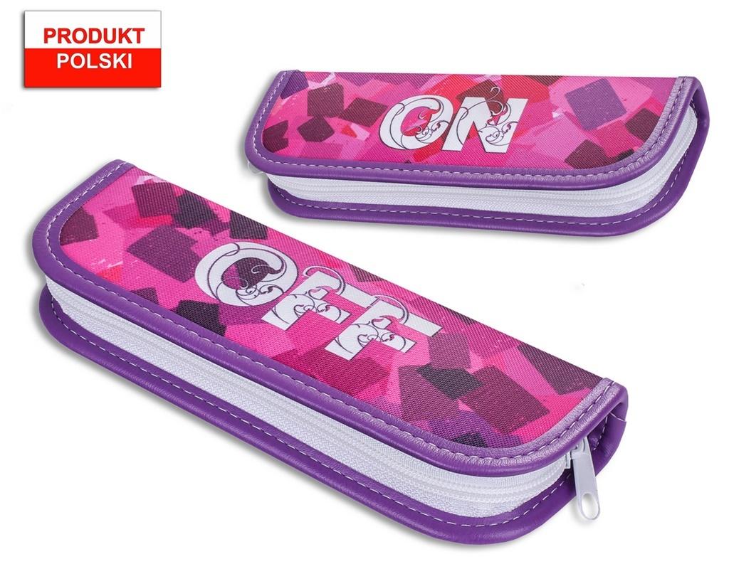 Piórnik na długopisy wykonany z kodury, ozdobionej nadrukiem przedstawiającym grafikę ON/OFF wykonanym w technologii sublimacji.W środku piórnika znajdują się gumki umożliwiające trzymanie długopisów. Piórnik o wymiarach 21x4x2,8[cm]. Piórnik bez wyposażenia.