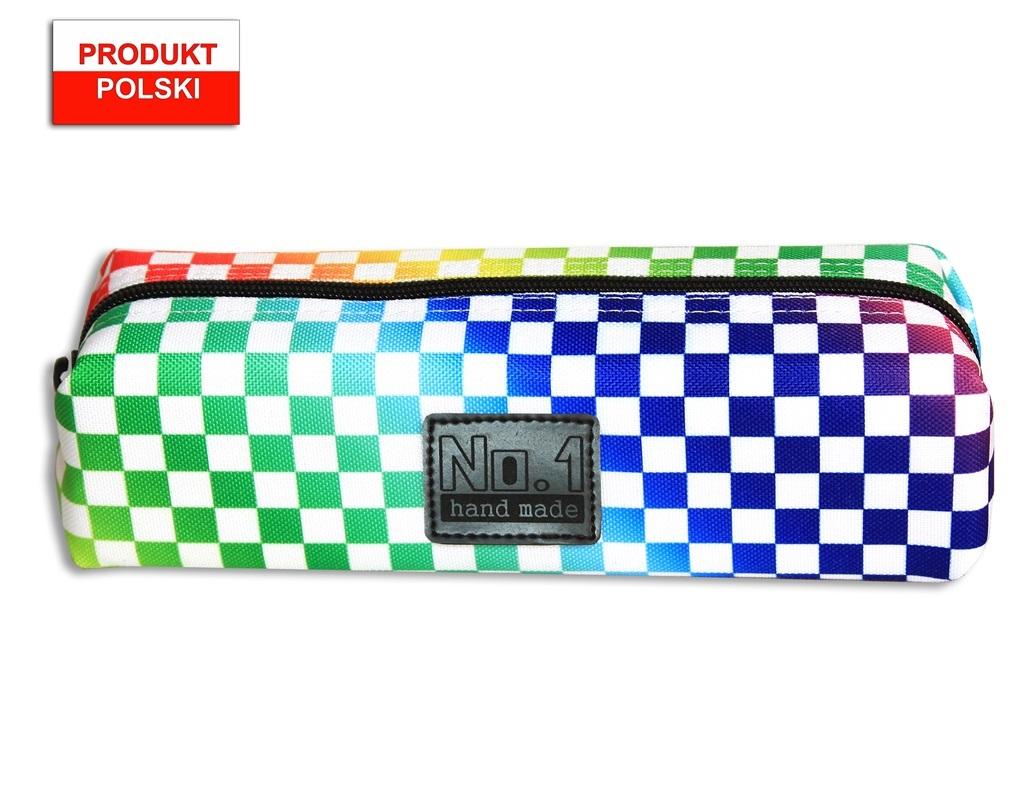 Piórnik klocek wykonany z kodury, ozdobionej nadrukiem przedstawiającym kratę wykonanym w technologii sublimacji. Piórnik o wymiarach 21x6,5x6,5[cm]. Kolor tęczowy. Piórnik bez wyposażenia.