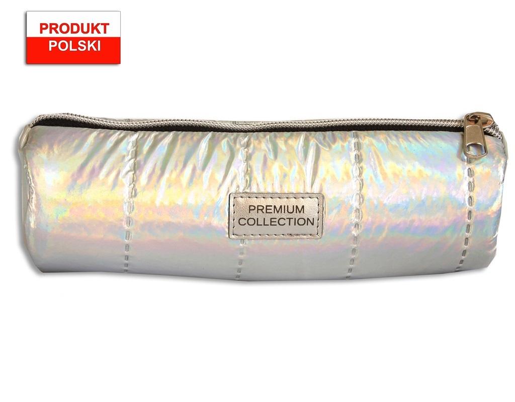 Piórnik tuba wykonany z tkaniny o wysokim połysku, ozdobionej naszywką. Piórnik o wymiarach 21x7[cm]. Kolor srebrny. Piórnik bez wyposażenia.