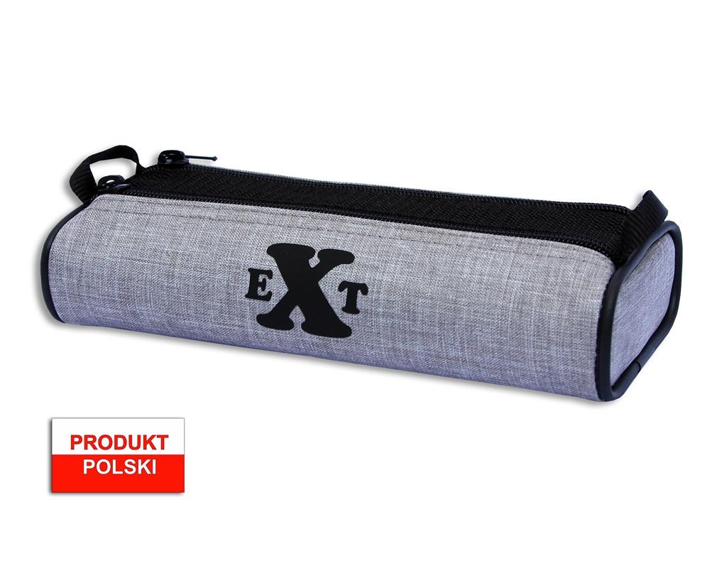 Piórnik owalny uszyty z kodury. Piórnik posiada 2 komory, a co za tym idzie 2 zamki błyskawiczne, ozdobiony nadrukiem EXT wykonanym w technologii termotransferu. Piórnik o wymiarach 21x4,5x9,5[cm].