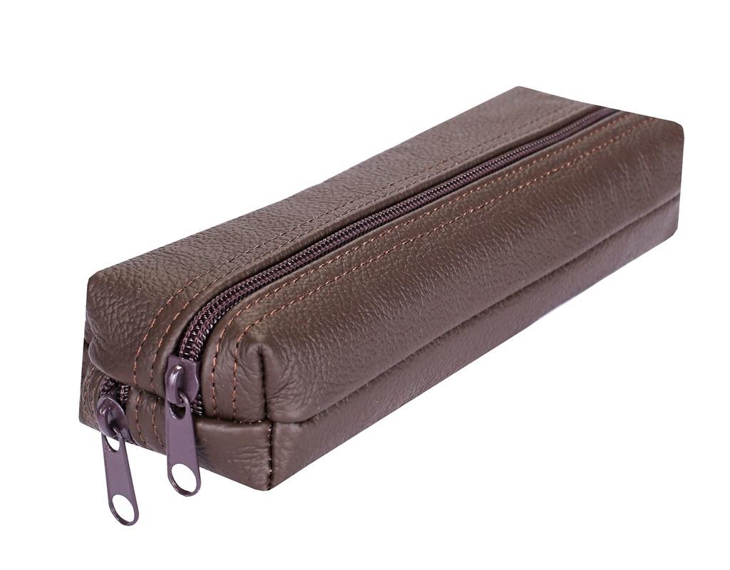 Piórnik płaski uszyty ze skóry naturalnej gładkiej, posiada 2 komory.Piórnik o wymiarach 20x6,5x3[cm]. Kolor brązowy