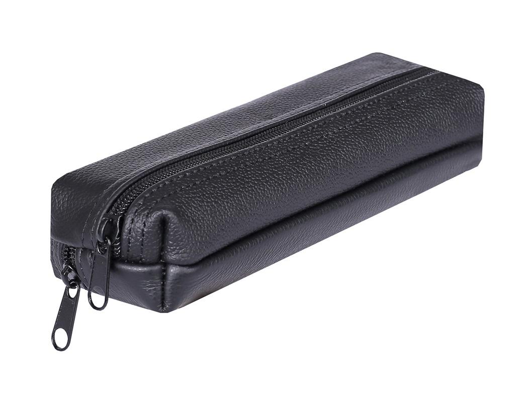 Piórnik płaski uszyty ze skóry naturalnej gładkiej, posiada 2 komory. Piórnik o wymiarach 20x6,5x3[cm]. Kolor czarny