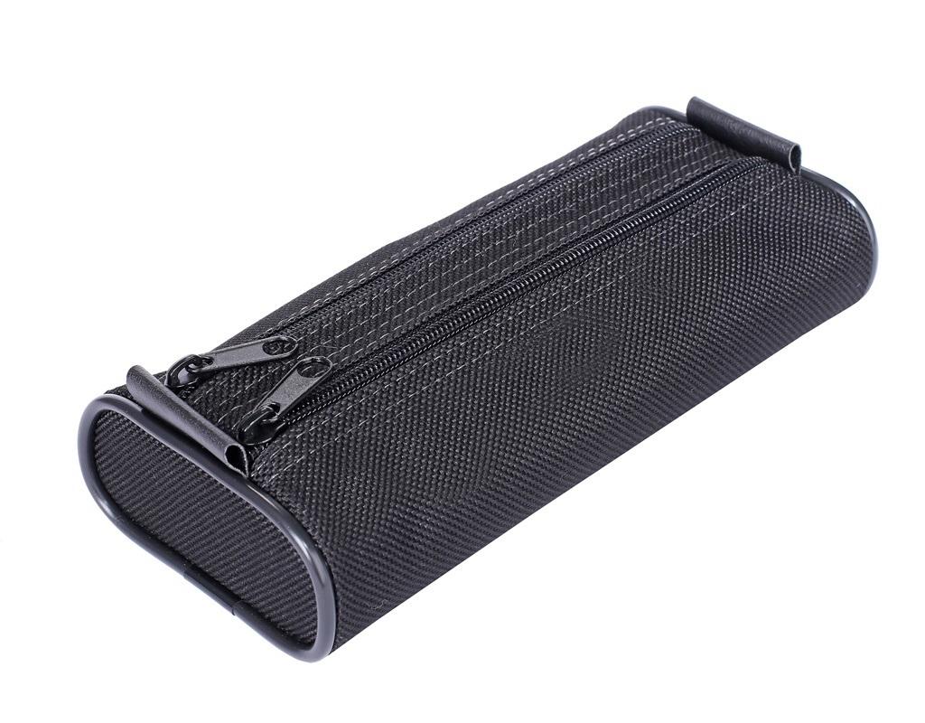 Piórnik owalny uszyty z kodury, piórnik posiada 2 komory. Piórnik o wymiarach 21 x 9,5 x 4,5 cm. Kolor czarny.