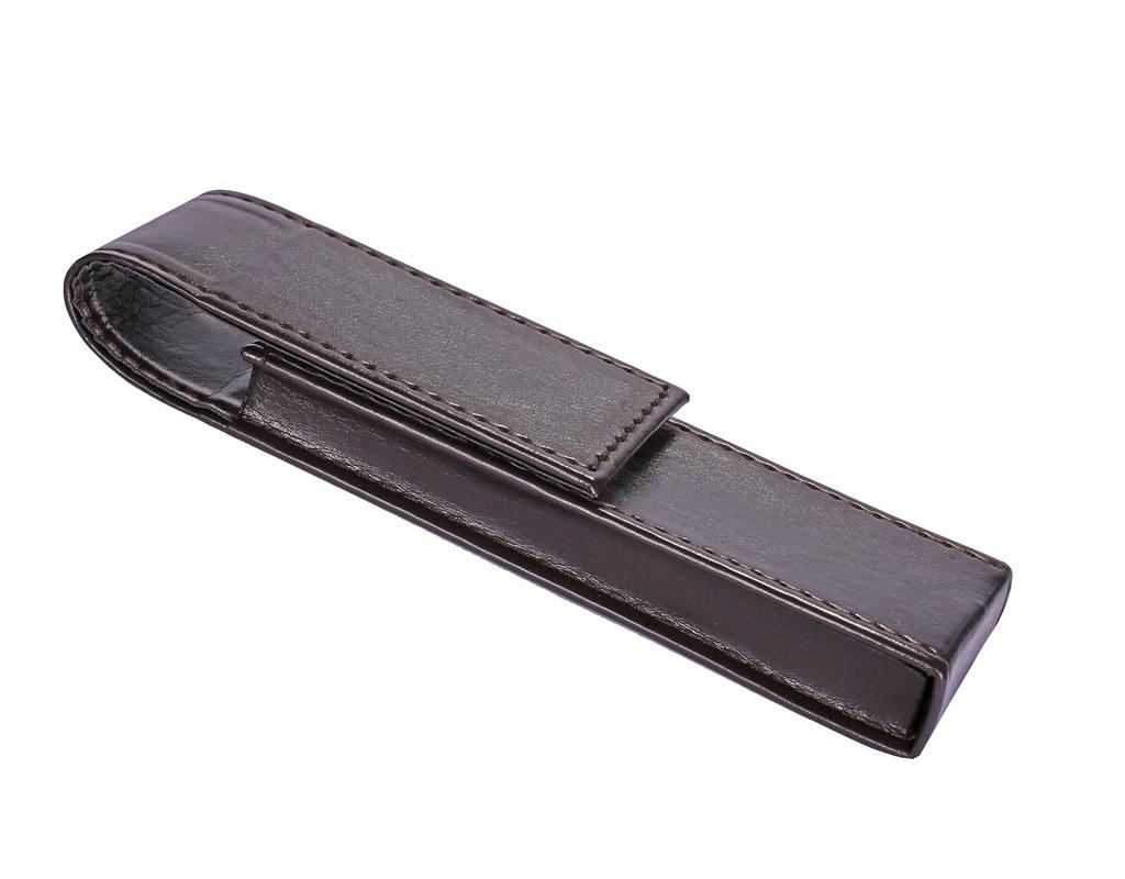Etui na długopisy wykonane ze skaju, zamykane na magnetyczny klips. Etui o wymiarach 17x4,5x1,8[cm]. Kolor brązowy