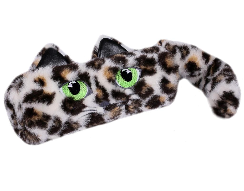 Piórnik tuba uszyty z futra, ozdobiony haftem, uszami oraz ogonem. Piórnik o wymiarach 21x7[cm]. Kolor panterka