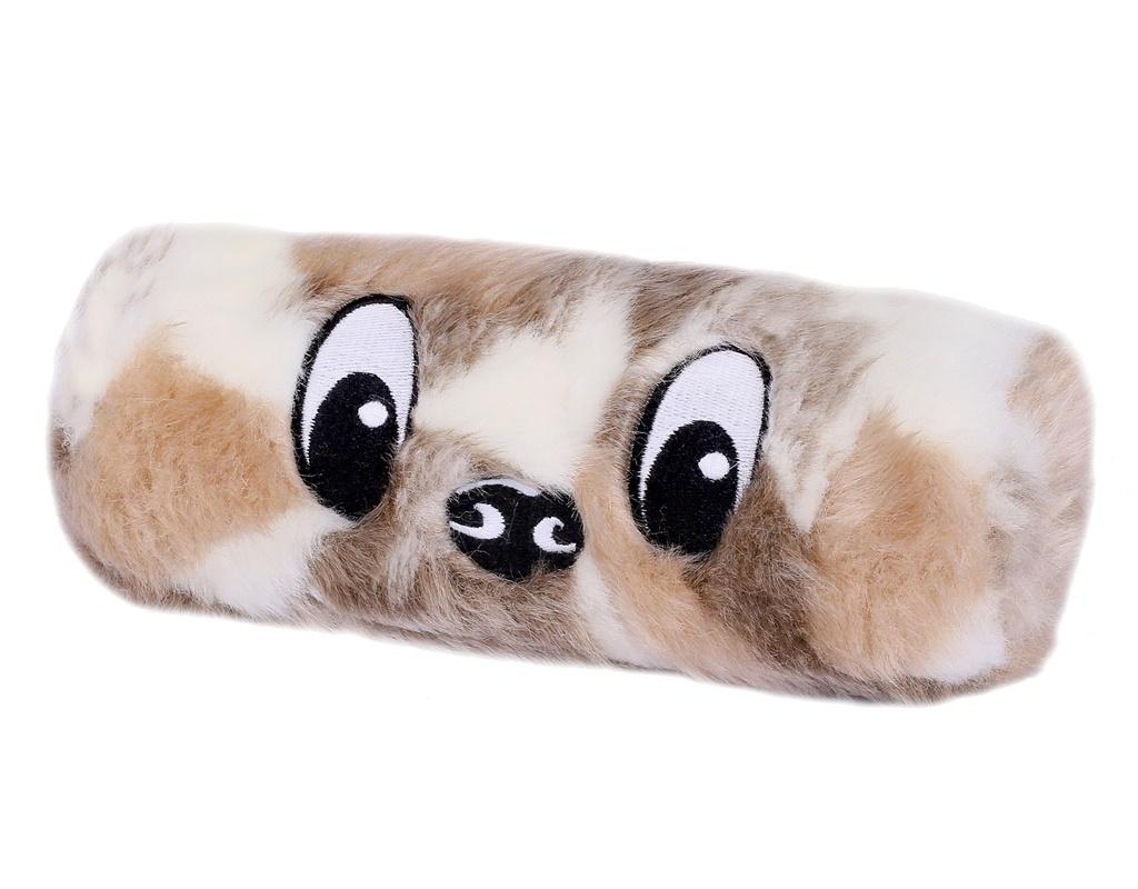 Piórnik tuba uszyty z futra, ozdobiony haftem. Piórnik o wymiarach 21x7[cm]. Kolor beżowy