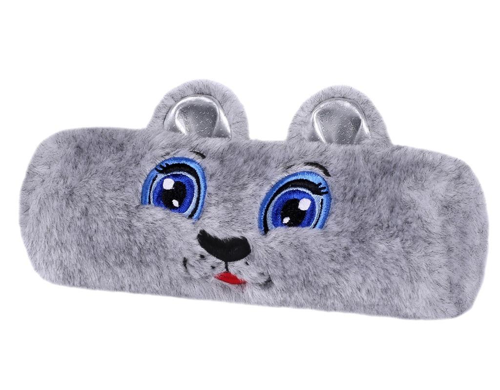 Piórnik tuba uszyty z futra, ozdobiony haftem. Piórnik o wymiarach 21x7[cm]. Kolor szary