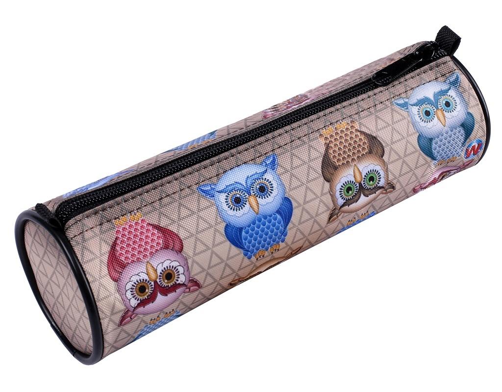 Piórnik tuba uszyty z kodury, ozdobionej wzorem sowy.Piórnik o wymiarach 21x7[cm].Kolor brązowy