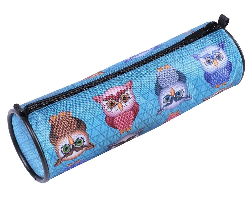 Piórnik tuba uszyty z kodury, ozdobionej wzorem sowy. Piórnik o wymiarach 21x7[cm]. Kolor turkusowy