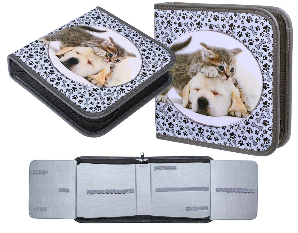 Piórnik twardy z 2 otwieranymi klapkami. W środku piórnika znajdują się gumki umożliwiające trzymanie długopisów. Piórnik bez wyposażenia