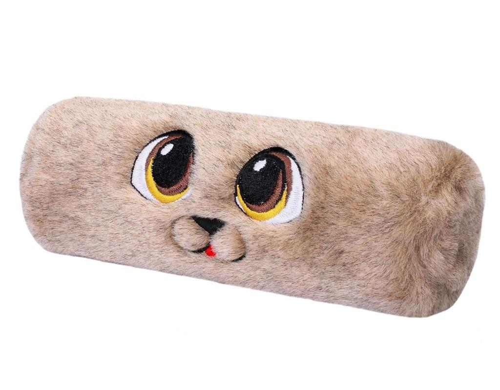 Piórnik tuba uszyty z tkaniny futerkowej, ozdobiony haftem. Piórnik bez wyposażenia.