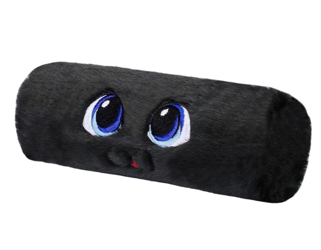 Piórnik tuba uszyty z tkaniny futerkowej, ozdobiony oczami oraz grzywką. Piórnik bez wyposażenia.