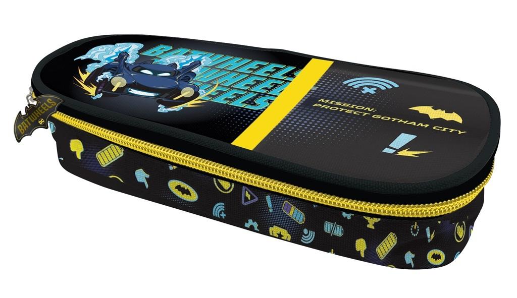 Owalny piórnik szkolny z klapką to niezbędny przedmiot uczniów. Wewnątrz na klapce znajdują się gumowe uchyty na przybory do pisania oraz skrzydło, na którym jest kieszonka z siateczki zamykana zamkiem błyskwicznym i kolejne gumowe uchwyty. Komora główna jest pojemna, korpus dodatkowo usztywniany. Na piórniku znajduje się motyw z serii Batman. Duży piórnik z organizerem oprócz najważniejszych przyborów szkolnych, pomieści także m. in. pomadkę ochronną, chusteczki czy mały krem do rąk. Dzięki ruchomej przekładce, można oddzielić produkty kosmetyczne od szkolnych .Wyróżnia się na tle konkurecji tym, że dłuższy.