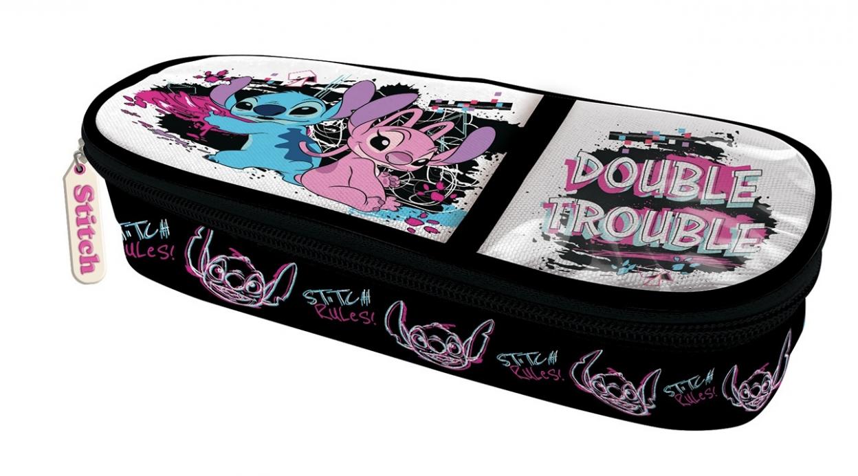 Owalny piórnik szkolny z klapką to niezbędny przedmiot uczniów. Wewnątrz na klapce znajdują się gumowe uchyty na przybory do pisania oraz skrzydło, na którym jest kieszonka z siateczki zamykana zamkiem błyskwicznym i kolejne gumowe uchwyty. Komora główna jest pojemna, korpus dodatkowo usztywniany. Na piórniku znajduje się motyw z serii Stitch. Duży piórnik z organizerem oprócz najważniejszych przyborów szkolnych, pomieści także m. in. pomadkę ochronną, chusteczki czy mały krem do rąk. Dzięki ruchomej przekładce, można oddzielić produkty kosmetyczne od szkolnych .Wyróżnia się na tle konkurecji tym, że dłuższy.
