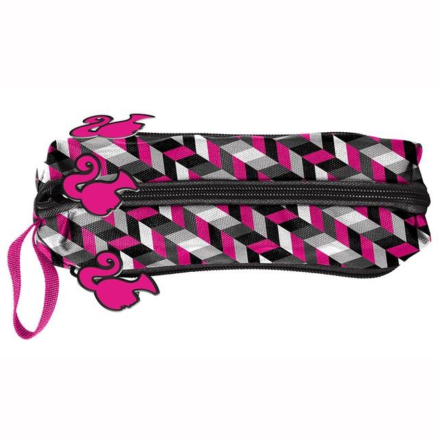 Piórnik Barbie różowo-czarny, przybornik trzykomorowy. Idealny na dodatkowe akcesoria szkolne. Wyposażony jest w trzy zapinane na zamek przegródki umożliwiające zachowanie porządku. Stanowi świetny dodatek do klasycznych piórników, które nie pomieszczą dodatkowych aksesoriów szkolnych, takich jak temperówka, klej, cyrkiel, korektor czy markery. Piórnik może służyć także jako etui lub mini-kosmetyczka. W Paso dbamy, aby nasze piórniki były funkcjonalne, lekkie i jednocześnie pakowne.