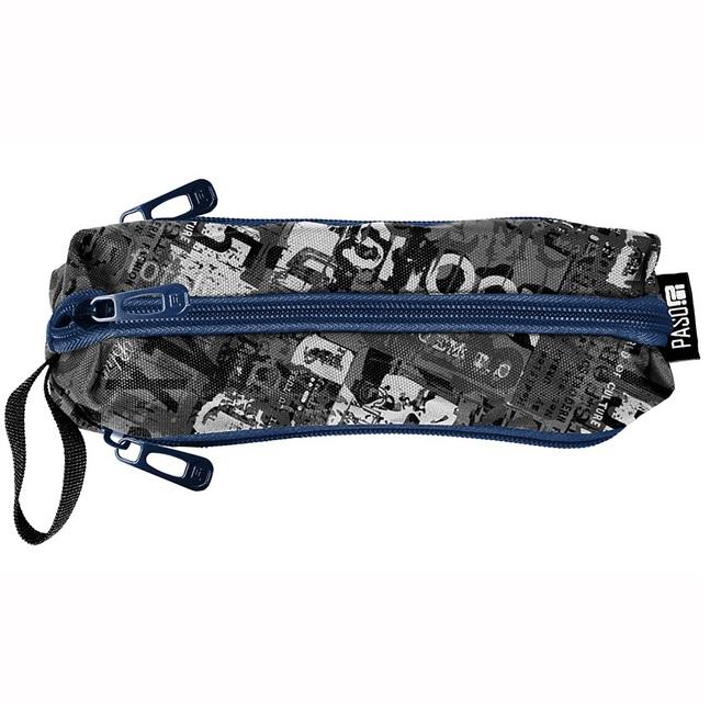 Piórnik granatowo-szary, przybornik trzykomorowy. Idealny na dodatkowe akcesoria szkolne. Wyposażony jest w trzy zapinane na zamek przegródki umożliwiające zachowanie porządku. Stanowi świetny dodatek do klasycznych piórników, które nie pomieszczą dodatkowych aksesoriów szkolnych, takich jak temperówka, klej, cyrkiel, korektor czy markery. Piórnik może służyć także jako etui lub mini-kosmetyczka. W Paso dbamy, aby nasze piórniki były funkcjonalne, lekkie i jednocześnie pakowne.