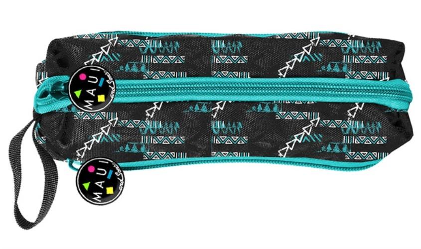 Piórnik, przybornik trzykomorowy Maui and Sons zielono-czarny. Idealny na dodatkowe akcesoria szkolne. Wyposażony jest w trzy zapinane na zamek przegródki umożliwiające zachowanie porządku. Stanowi świetny dodatek do klasycznych piórników, które nie pomieszczą dodatkowych aksesoriów szkolnych, takich jak temperówka, klej, cyrkiel, korektor czy markery. Piórnik może służyć także jako etui lub mini-kosmetyczka. W Paso dbamy, aby nasze piórniki były funkcjonalne, lekkie i jednocześnie pakowne.