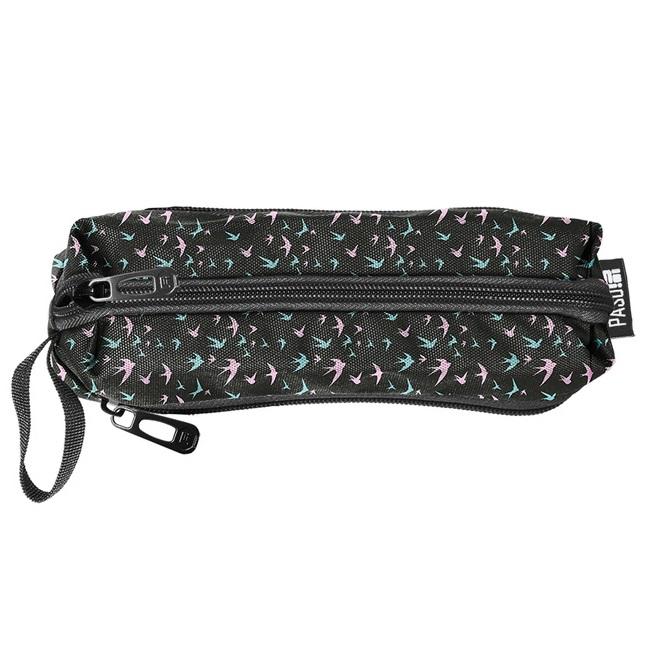 Piórnik, przybornik trzykomorowy w jaskółki. Idealny na dodatkowe akcesoria szkolne. Wyposażony jest w trzy zapinane na zamek przegródki umożliwiające zachowanie porządku. Stanowi świetny dodatek do klasycznych piórników, które nie pomieszczą dodatkowych aksesoriów szkolnych, takich jak temperówka, klej, cyrkiel, korektor czy markery. Piórnik może służyć także jako etui lub mini-kosmetyczka. W Paso dbamy, aby nasze piórniki były funkcjonalne, lekkie i jednocześnie pakowne.