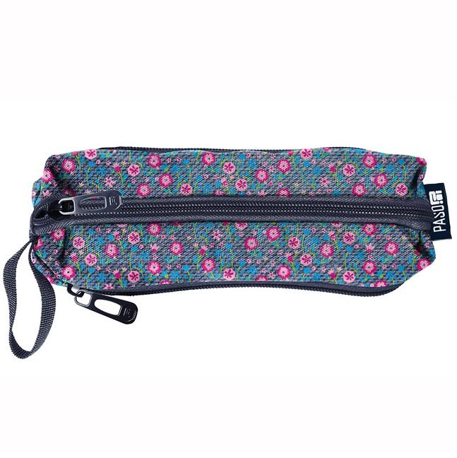Piórnik w drobne kwiatki, przybornik trzykomorowy. Idealny na dodatkowe akcesoria szkolne. Wyposażony jest w trzy zapinane na zamek przegródki umożliwiające zachowanie porządku. Stanowi świetny dodatek do klasycznych piórników, które nie pomieszczą dodatkowych aksesoriów szkolnych, takich jak temperówka, klej, cyrkiel, korektor czy markery. Piórnik może służyć także jako etui lub mini-kosmetyczka. W Paso dbamy, aby nasze piórniki były funkcjonalne, lekkie i jednocześnie pakowne.
