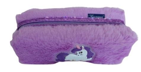 Piórnik z futerkiem oraz naszywką jednorożca. Posiada jedną komorę zapinaną na zamek. Doskonale nadaje się do szkoły.