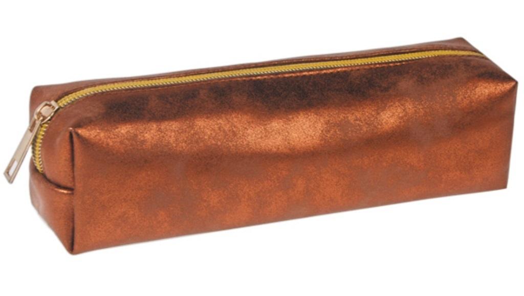 Piórnik w kształcie tuby z zamkiem błyskawicznym. Pomieści niezbędne artykuły piśmiennicze i nie zajmie dużo miejsca w plecaku. Piórnik dostępny w kolorze różowym, złotym, brązowym i turkusowym. Wymiary: 20,5 x 5 x 5,5 cm