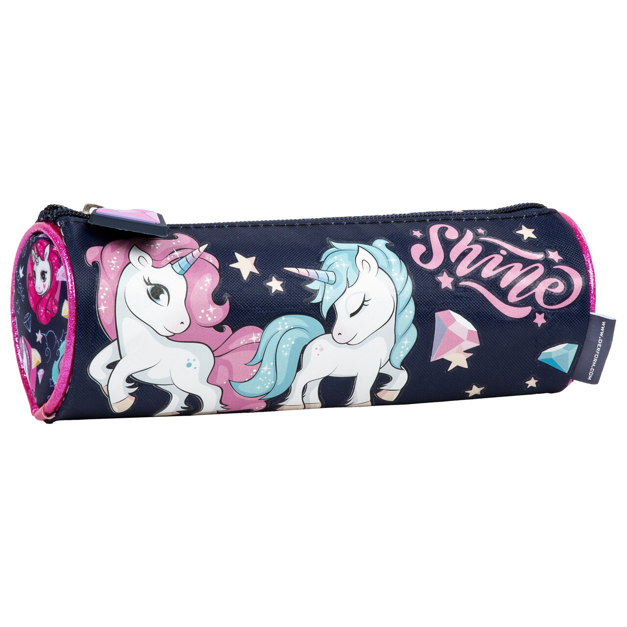 Jednokomorowa saszetka typu tuba, zapinana na zamek zakończony ozdobną zawieszką.