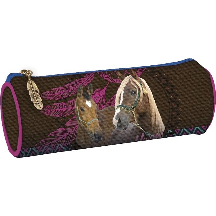 Jednokomorowa saszetka typu tuba, zapinana na zamek zakończony ozdobną zawieszką.
