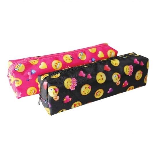 Piórnik typu saszetka zamykany na zamek błyskawiczny z kolorowymi nadrukami emotek. Pomieści niezbędne przybory szkolne.