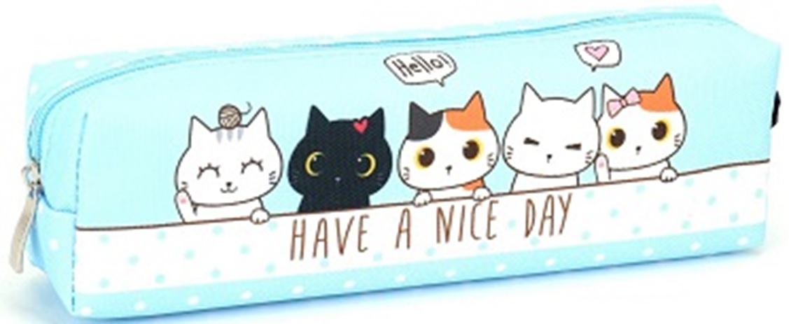 Uroczy piórnik z motywem kotków zamykany na zamek z jedną komorą. Doskonale nadaje się do szkoły.