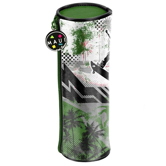Piórnik tuba Maui and Sons Skater. Produkt składa się z jednej głównej komory zapinanej na zamek błyskawiczny. Idealnie pomieści wszelkie niezbędne artykuły piśmiennicze oraz przybory szkolne.